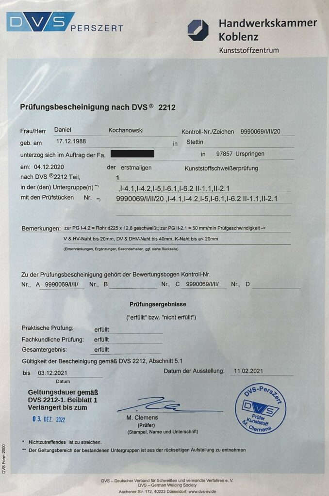 Beim Poolbau wird viel geschweißt. Umso wichtiger ist es, dass wir als Unternehmen TÜV-zertifiziert sind und nachweisen können, dass wir Schweißarbeiten an Ihrem Pool vornehmen dürfen.